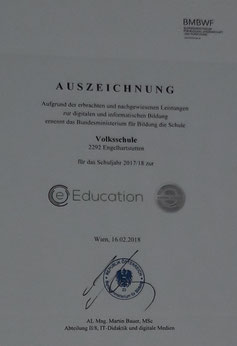 Vom Bundesministerium für Bildung erhielt unsere Schule für das Schuljahr 2017/18 eine Auszeichnung für digitale und informative Bildung.